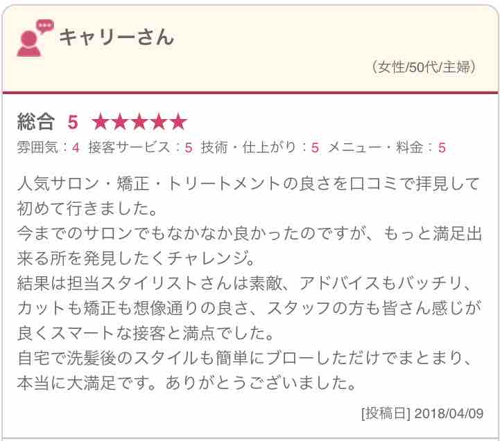 この度は口コミをご覧いただいてのご来店、誠にありがとうございました。